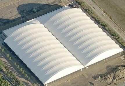 建筑膜材是氣膜結構工程中所使用的主要材料,也是重要的組成部分之一。它是由高強度的織物基材和聚合物涂層構成的復合材料,有些膜材還包括面層?;臎Q定膜材的膜結構力學特性,一般選用玻璃纖維或聚酯纖維;涂層對基材起保護作用,并形成膜結構膜材料的自潔、密封性能;面層保護基材,并改善表面性能。